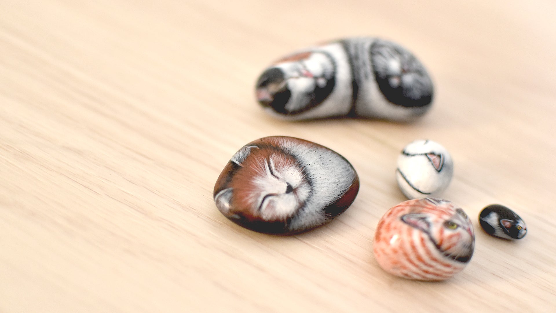 石という静かな素材に、猫という動きをもつ存在を描いた作品です。